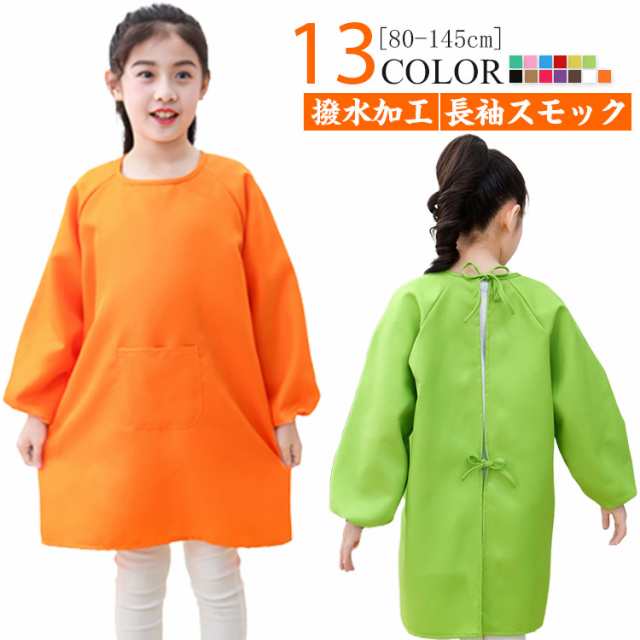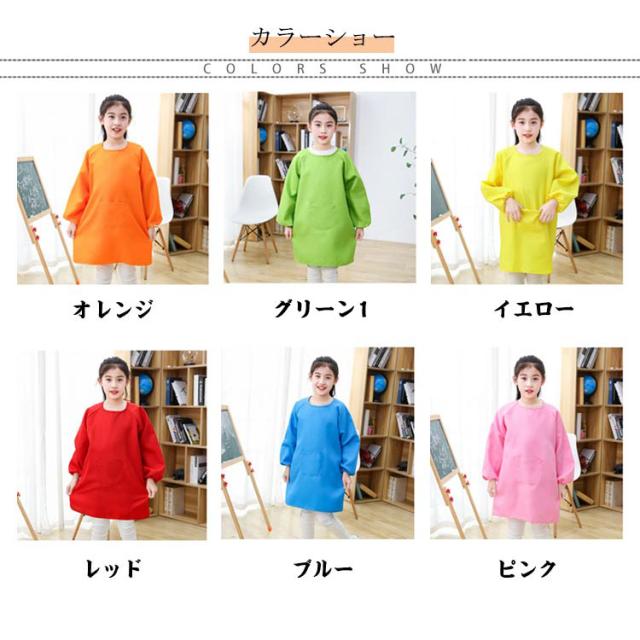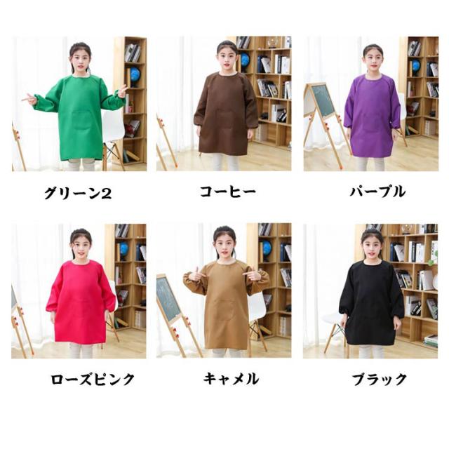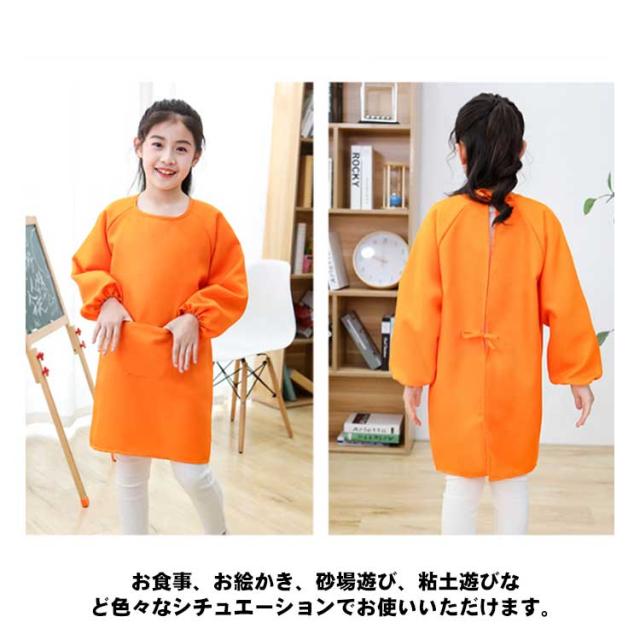 エプロン キッズ お食事エプロン 子供用 保育園 女の子 スモック 男の子 キッズ ベビー 長袖 幼児 遊び着 汚れ防止 撥水加工 子供服 幼稚園 ポケット付き 小学生 習字 書道 図工 図画工作 シンプル 無地 女児