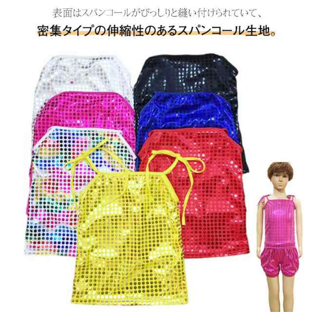 | 表面はスパンコールがびっしりと縫い付けられていて、密集タイプの伸縮性のあるスパンコール生地。 伸縮性のある柔らかい生地で、着用しやすいです。 肩紐は調節出来るので、子供から大人まで着用できます♪ 1枚でも、インナーとしてチラっと見せても、ゴージャスになれちゃう優れもの♪ ヒップホップや社交ダンス、サンバやベリーダンスから、ダンサーやシンガーさんのステージ衣装として♪ ダンスチームで統一感を出して揃えたり、お友達と色違いで合わせると、お目立ち度も更にUP☆ | |
