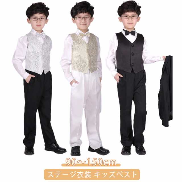 ダンス衣装 演出服 舞台衣装 子供服 発表会 学園祭 子供 ステージ衣装 こども フォーマルスーツ 結婚式 子ども ピアノ キッズ キッズダンス 130 団体服 男児 入学式 卒業式 ステージ衣装 90 100 110 120 男の子ベスト 140 150 ブラック ゴールド