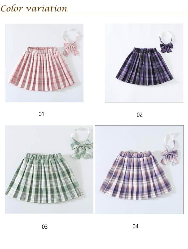 2点セット プリーツスカート キッズ リボンタイ 制服 スカート 女の子 チェック柄 スクールスカート ミニスカート インナーパンツ付き Aライン スカパン JK制服 ジュニア ミニスカート 春夏秋 中学生 キッズ 女子高校 ハロウィン コスプレ 入学式