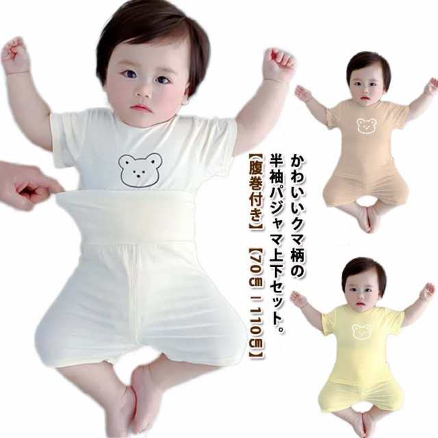 伸縮性 赤ちゃん 女の子 パジャマ tシャツ 上下セット ルームウェア 腹巻付き 子供服 ナイトウェア クマ柄 セットアップ 熊柄 かわいい ショートパンツ 涼しい ベビー服 男の子 部屋着 寝間着 薄手 ベビー服 吸汗速乾 通気性 キッズ 春 夏 70 80 90 100 110
