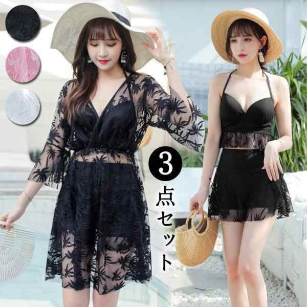 水着 レディース 体型カバー 可愛い レース タンキニ 水着 露出控えめ セパレート 上下セット 3点セット スイムウェア リゾートビーチ 温泉 プール