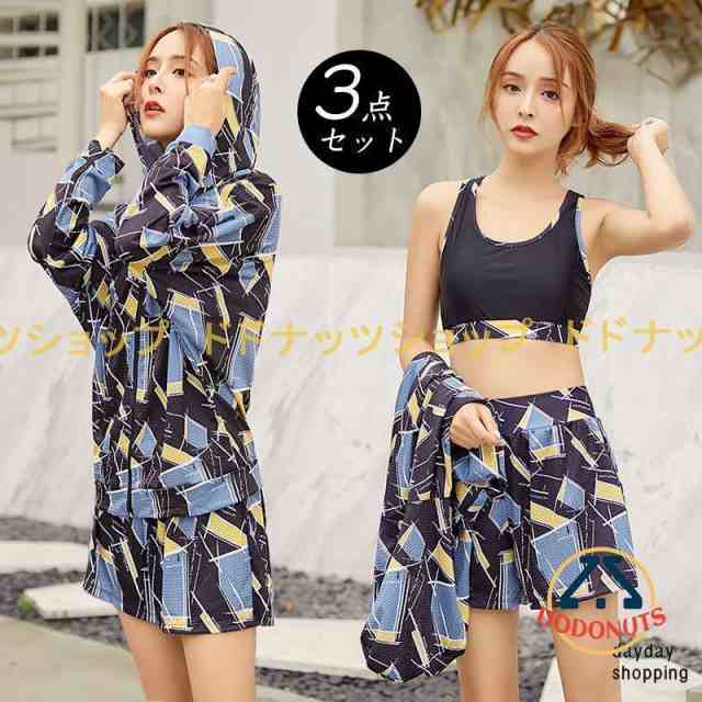 水着 レディース 体型カバー セパレート 大きいサイズ おしゃれ かわいい ママ水着 半袖 女性用 ラッシュガード ボタニカル 柄 黒 露出控えめ 日焼