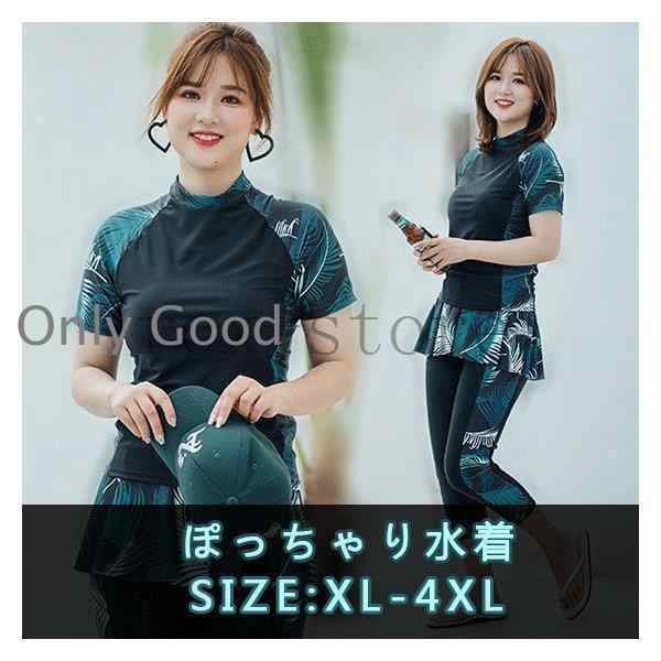 半袖フィットネス水着セパレート水着ぽっちゃり水着レディース大きいサイズ3点セットスカート付き競技競泳体型カバー海水浴温泉大人