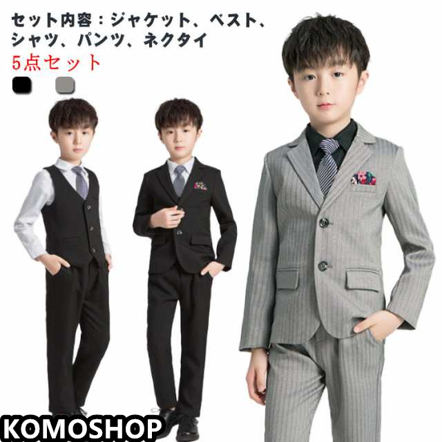 | 普通着としてもお洒落です!☆ 七五三や卒入学式、発表会、ちょっとしたお出かけや、冠婚葬祭までオールマイティーに使えるスーツセット ♪ ※美シルエット☆ 可愛い!プレゼントとしても大変喜ばれています! ※通気性に優れた生地でさらっと快適♪ 胸板が厚く、ウエストは細く、格好よいシルエット♪ セット内容:ジャケット、ベスト、シャツ、パンツ、ネクタイ | |