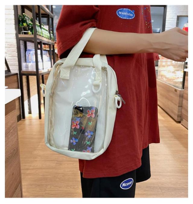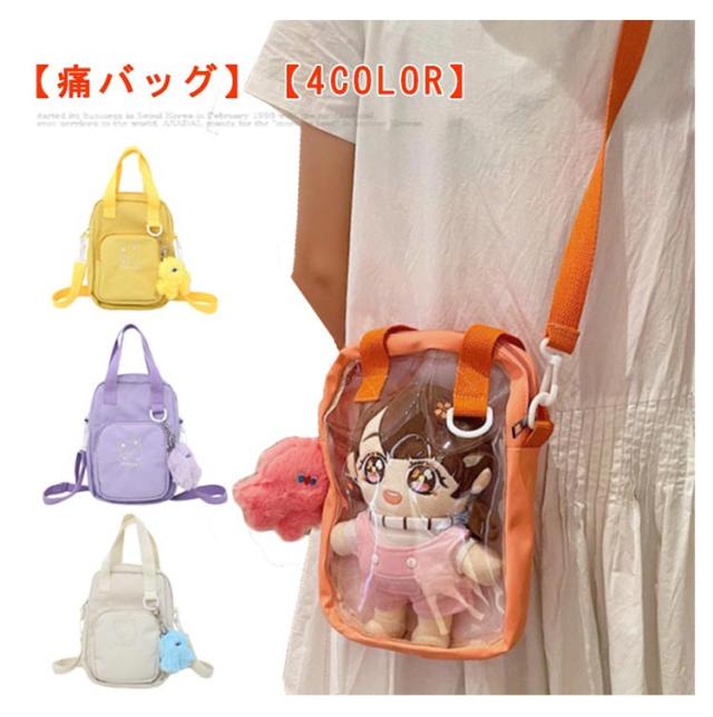| 【痛バッグ】【4color】 自分のコレクションを持ち歩けるバッグです。 マイコレクションをオシャレに持ち歩きましょ♪ バッグの透明ポケットで見せたいアイテムで自分の好みにアレンジできます。 推しの写真、缶バッジ、ストラップ、ぬいぐるみ、萌グッズなど入れて一目瞭然です。 | |