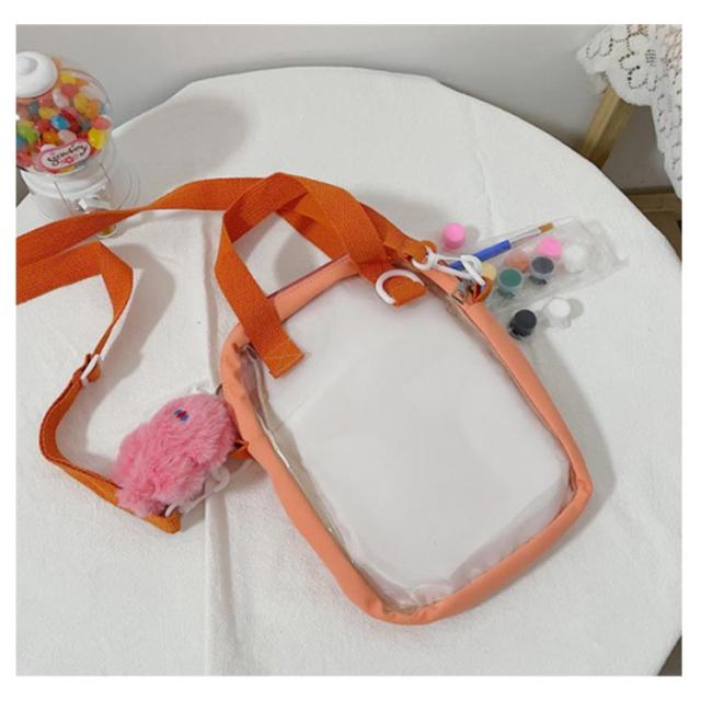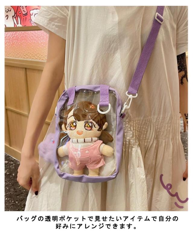ショルダーバッグ キャンバス地 透明ポケット 軽量 痛バッグ クリアバッグ 人形 ぬいぐるみ 透明 ビニール 痛バ 斜めかけ おしゃれ 可愛い 小さめ ショルダー 肩掛け レディース ガールズ 鞄