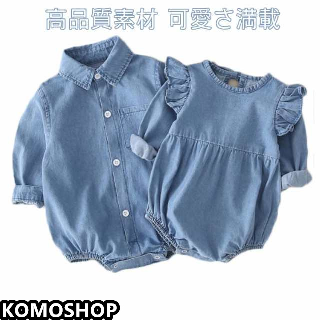 2タイプ展開 ベビー デニムロンパース 赤ちゃん ベビー服 送料無料 カバーオール 長袖 半袖 春物 夏物 秋物 綿 子供服 かわいい シンプル 女の子 男の子 出産祝い プレゼント ギフト