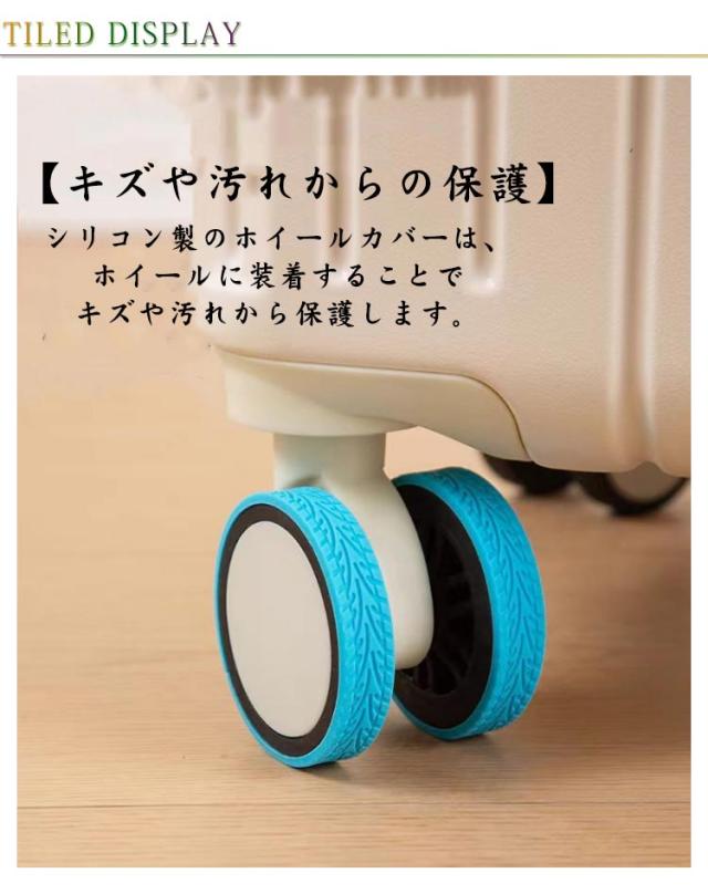 | 旅行者や頻繁に移動する人々にとって便利なアクセサリーです。 【キズや汚れからの保護】シリコン製のホイールカバーは、ホイールに装着することでキズや汚れから保護します。 【騒音低減】シリコン製で静かな移動を実現します。舗装された床やタイルの上を転がす際に発生する騒音を低減し、周囲の人々に快適な環境を提供します。 【転がり防止】ホイールカバーは滑り止め効果もあり、スーツケースやバッグが滑りやすい場所での転がりを防止します。急な坂道や傾斜面でも、ホイールがしっかりと地面に接地し、安定した移動が可能です。 【取り付け・交換簡単】タイヤのサイズに応じて任意のサイズにカット可能です。 裏面には両面テープで簡単に取り付けできます。 【様々なシーンで大活躍】スーツケース用、台車用、キャリーバッグ用、オフィスチェア用、様々なシーンで大活躍! | |