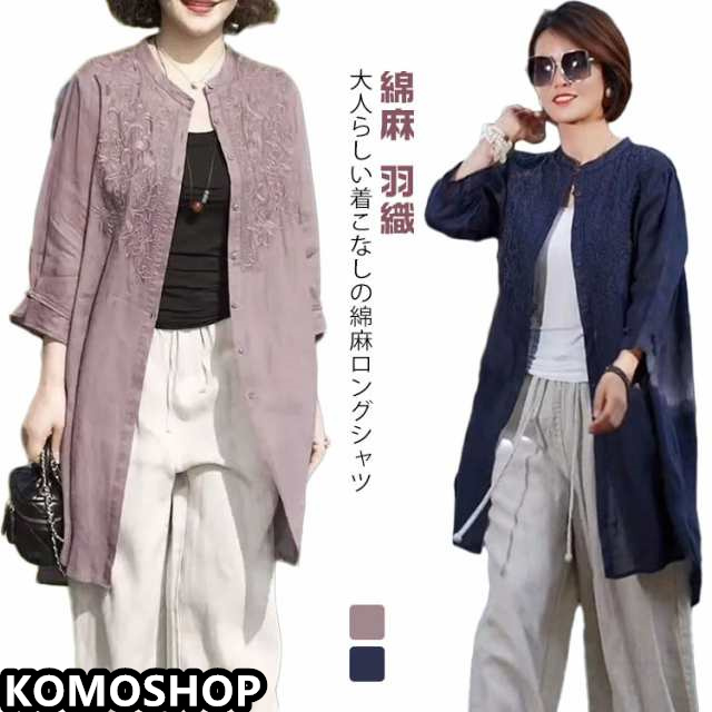 長袖 羽織 ロングシャツ 長袖チュニック 長袖 チュニック 綿麻 薄手 春夏 ロング丈 ナチュラル バンドカラー シャツ レディース スタンドカラー 秋物 ロング 開襟 立ち襟 綿麻風 無地 シャツ 羽織りもの 大きいサイズ