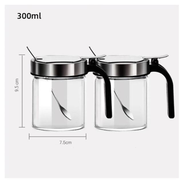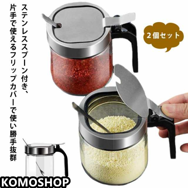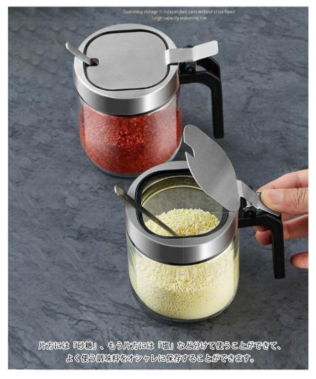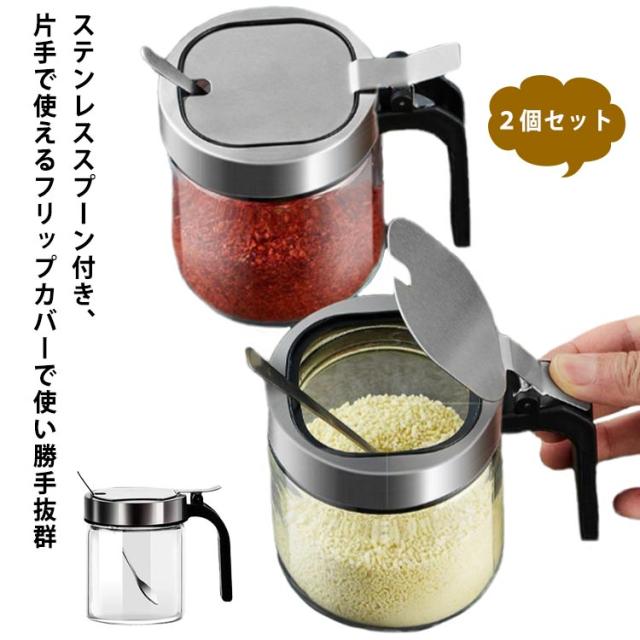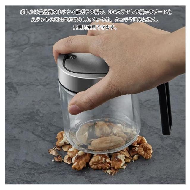 塩入れ ポット 300ml スパイスジャースパイスボトル 調味料入れ スプーン付き 調味料ポット ガラス 2個セット おしゃれ 2個セット 調味料 砂糖 使いやすい 詰め替え 密閉 調味料ケース 保存容器 容器 ケース 片手で簡単