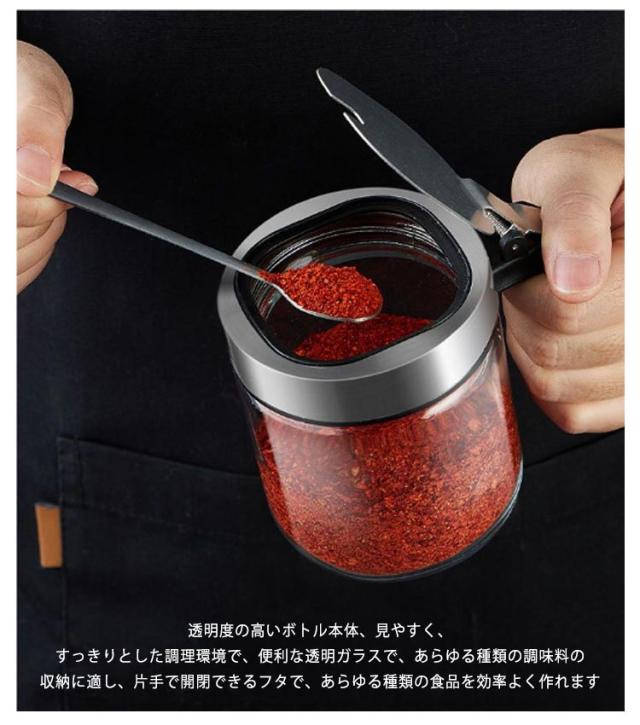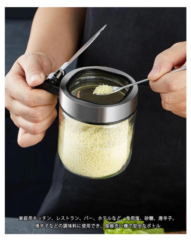 | 【2個セット】ステンレススプーン付き、片手で使えるフリップカバーで使い勝手抜群 様々な調味料に対応できる幅広いボトル口。300ml容量で、頻繁に調味料を入れなくて済みます。 片方には「砂糖」、もう片方には「塩」など分けて使うことができて、よく使う調味料をオシャレに保存することができます。 ボトルは高品質のホウケイ酸ガラス製で、304ステンレス製のスプーンとステンレス製の蓋が腐食しにくいため、ホコリや湿気に強く、長期間使用できます。 透明度の高いボトル本体、見やすく、すっきりとした調理環境で、便利な透明ガラスで、あらゆる種類の調味料の収納に適し、片手で開閉できるフタで、あらゆる種類の食品を効率よく作れます 家庭用キッチン、レストラン、バー、ホテルなど、食用塩、砂糖、唐辛子、唐辛子などの調味料に使用でき、食器洗い機で安全なボトル | |