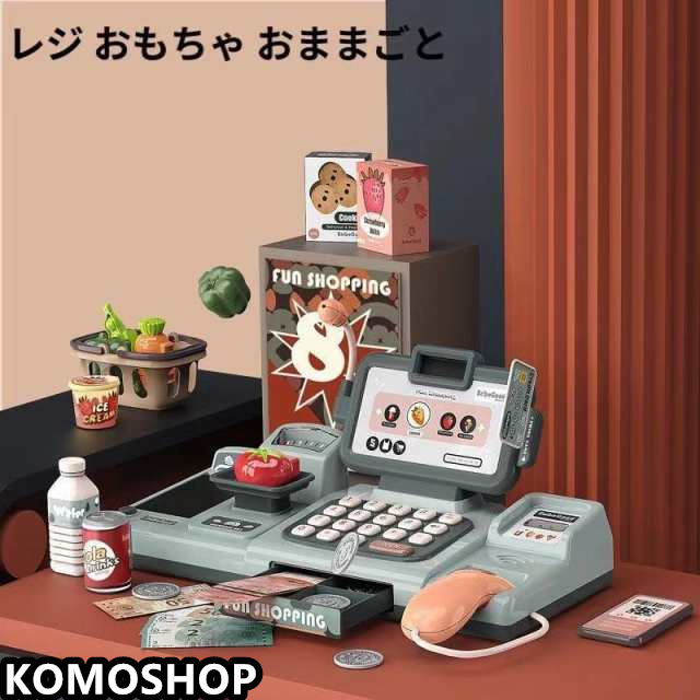 レジ おもちゃ おままごと お店屋さんごっこ 電卓 レジスター お買い物 ショップ店員 子供 室内 計算 キッズ 知育玩具 スキャンコード モバイル決済 計量