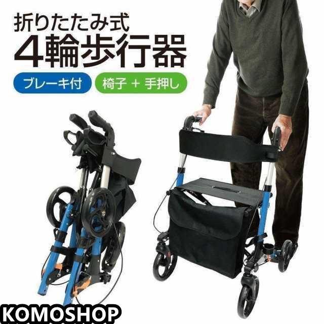 歩行器 介護用 介護 高齢者 シルバーカー 軽量 4輪歩行器 手押し車 室内室外兼用 折りたたみ式 ブレーキ付 椅子 散歩 敬老の日