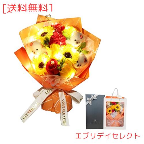 ?【くま LED付き 枯れない花 】ソープフラワー ひまわりとは、石けんで作られた花のことで、水やりの必要がなく、おしゃれなだけでなく、ほのかな香りがあり、長い間置いておいても枯れず。柔らかな香り、愛らしい形、鮮やかな色、スタイリッシュな外観など、本物の花のようにかわいらしく、その美しさと香りは人々を幸せな気分にさせてくれる。愛らしいクマと石けんのお花ソープフラワーを組み合わせたオリジナル花束、ライト付けで、サプライズの雰囲気を演出できます。