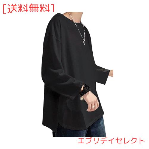 [Hiboss] tシャツ メンズ 長袖 半袖 大きいサイズ 無地 厚手 ラウンドカット おしゃれ ゆったり 秋服 冬服 メンズ ロンT ?M