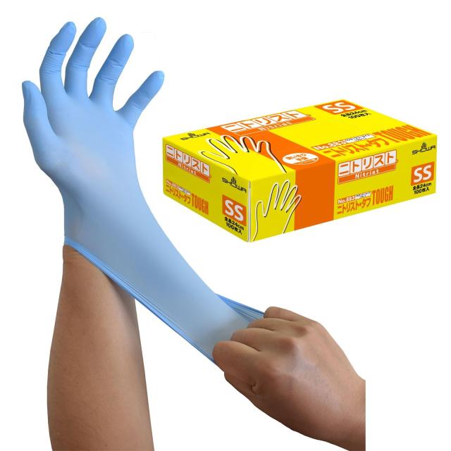 ショーワグローブ 【ニトリル手袋・食品衛生法適合】 No.883 ニトリスト・タフ 100枚入 ブルー SSサイズ 1函 ニトリルゴム 使い捨て 左右