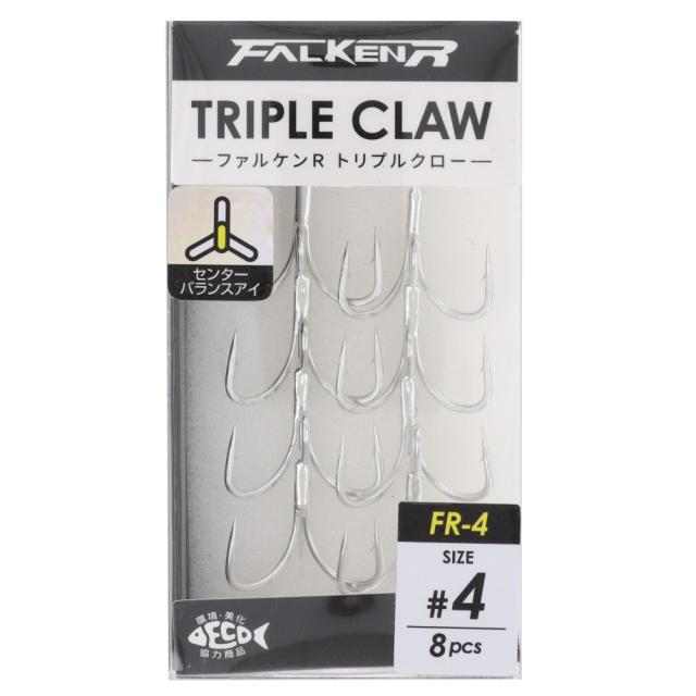 厳選素材を使用し、独自の尖頭技術を駆使してハリ先を研いだ貫通性に優れたミディアムヘビークラスのトリプルフック。ルアー本来の泳ぎを邪魔しないセンターバランス設計。防錆処理を施し、ソルトウォーターゲームにも対応。[CM-627][FALKEN R][25new16]