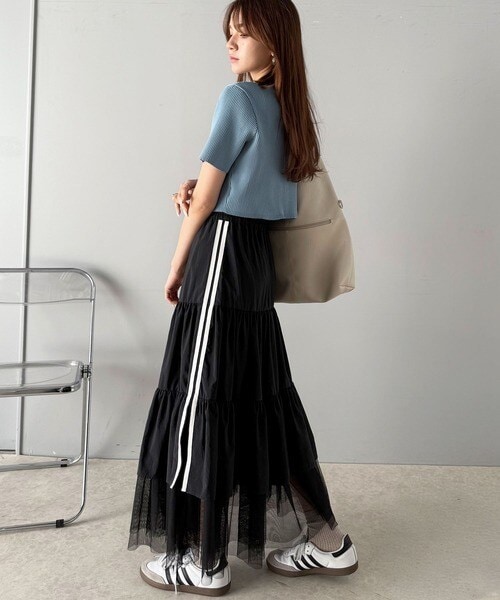 裾部分にはレイヤード風にチュール素材をドッキングし、