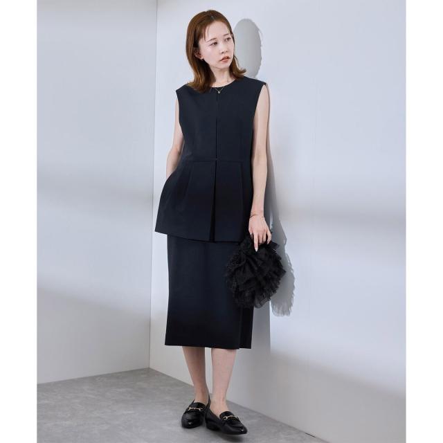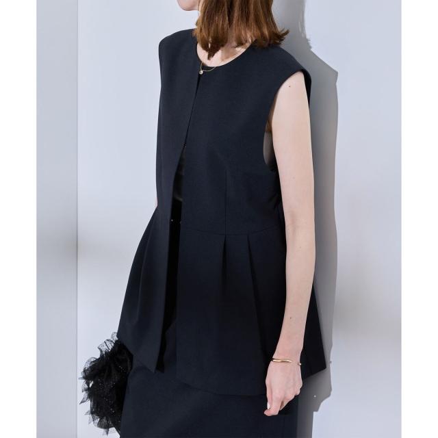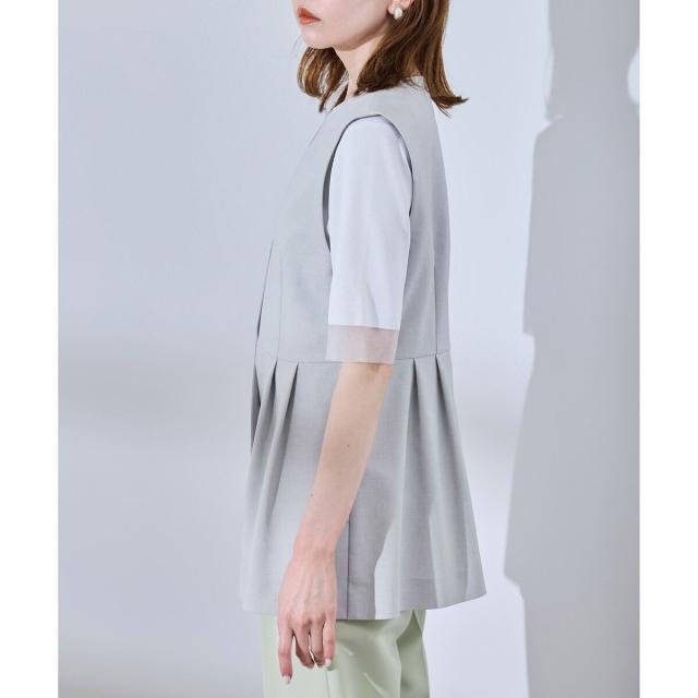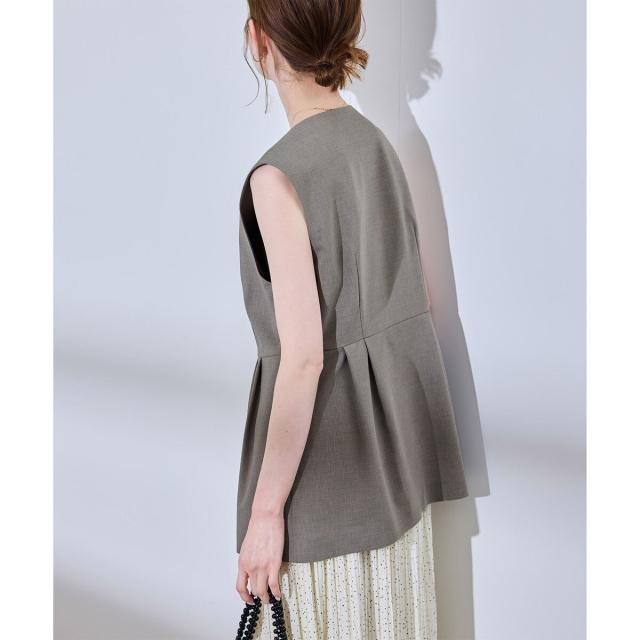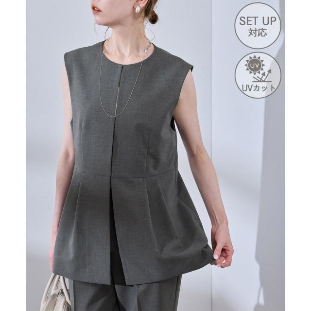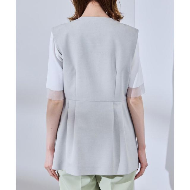 【UV対応】【リネンライク・シリーズ】ペプラムジレベスト/通勤・セットアップ対応