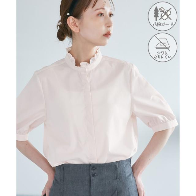 【花粉ガード・防シワ】ハーフスリーブフリルシャツ