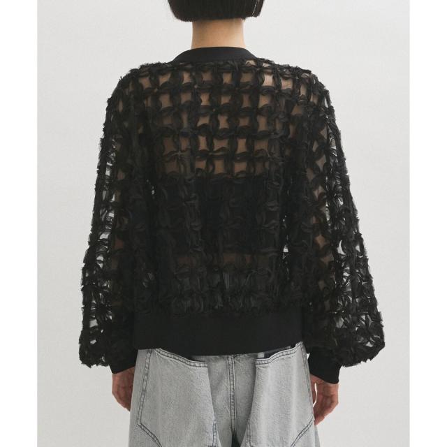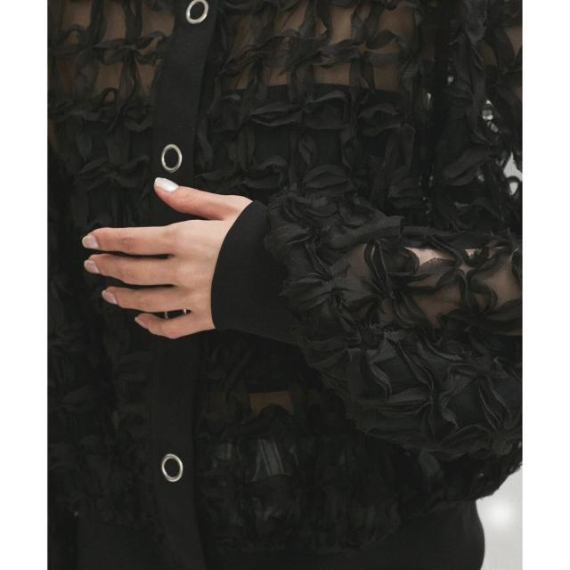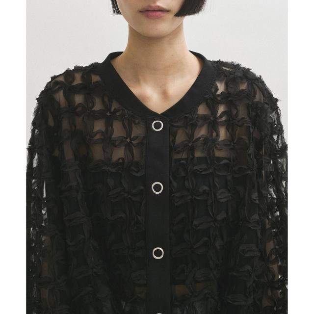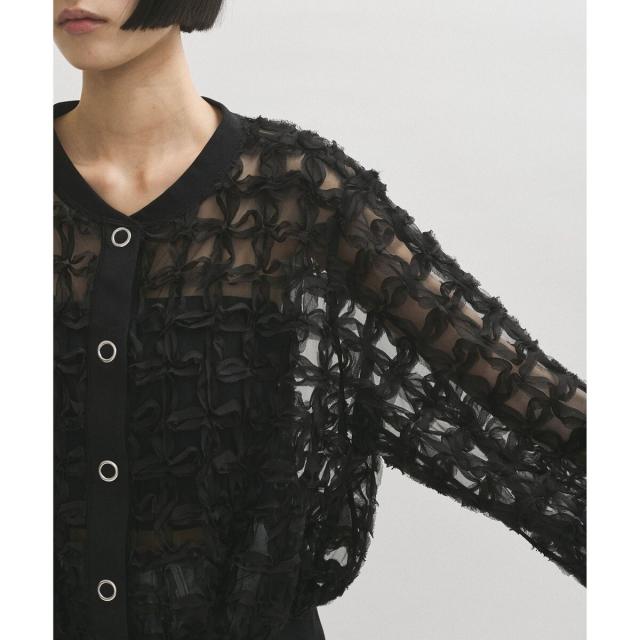 ベアキャミの上に羽織っても透けすぎず、シアーなスタイリングを楽しめる一着。