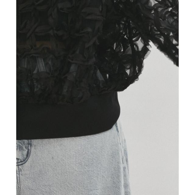 裾と袖にギャザーを寄せ、丸みのあるフォルムを作った透け感のあるブラウス。