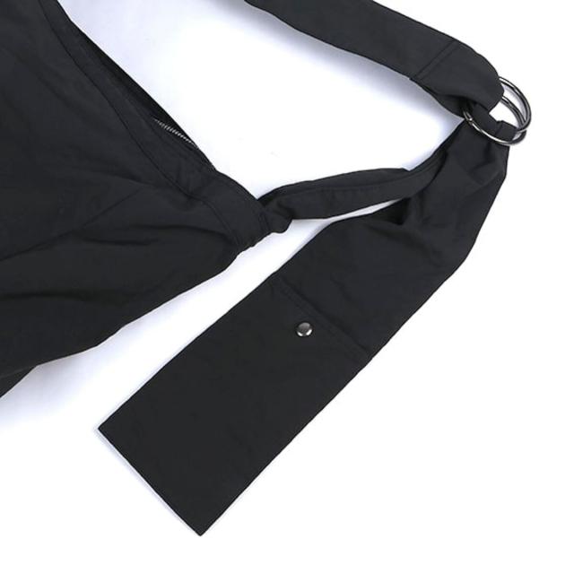 ショルダーの先端には携帯/スマホやカードケース等が収納できるスナップボタン付きのデザイン。