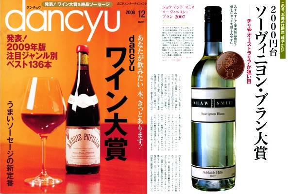 2008年12月に発刊された人気雑誌『dancyu』の[2009年ジャンル別ベストワイン大賞]では、見事ショー・アンド・スミスのソーヴィニヨンブランが大賞を獲得!
