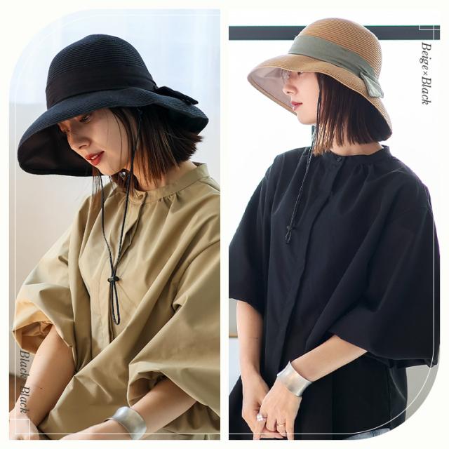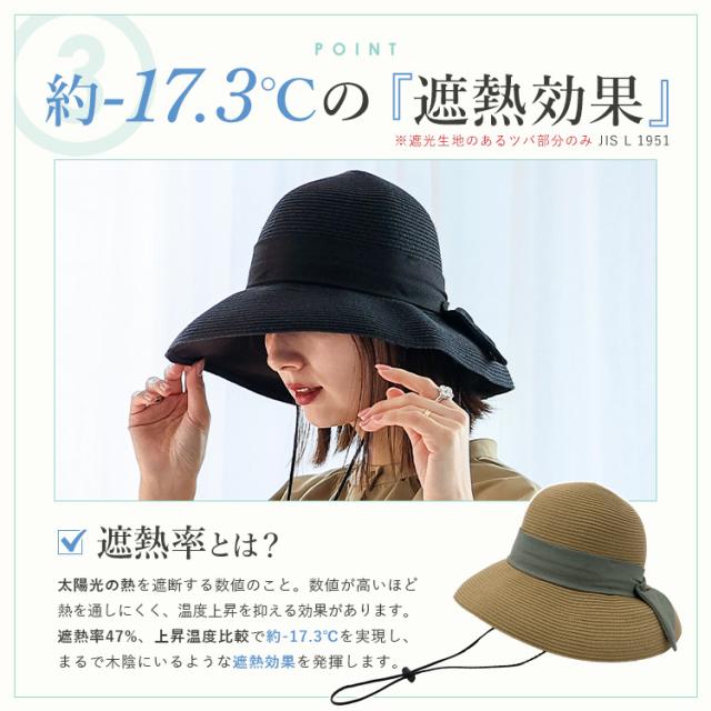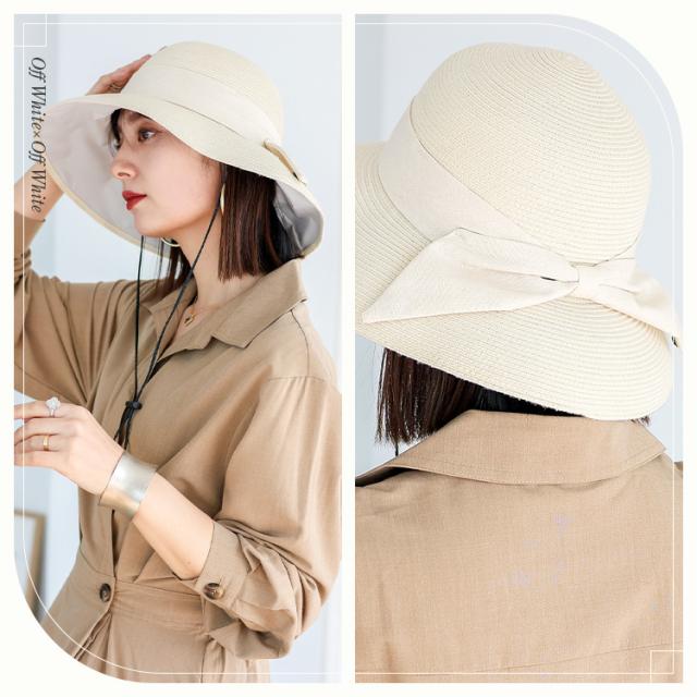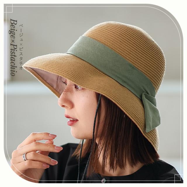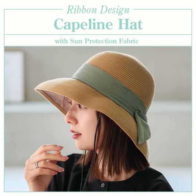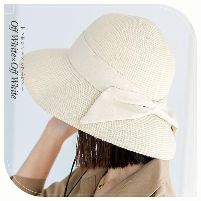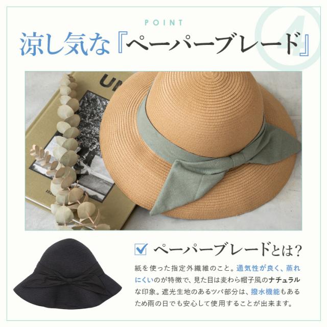 キャペリンハット レディース ペーパーブレード uvカット【遮光率99.9%以上/紫外線遮蔽率99.9%以上】 一級遮光生地 遮熱効果 遮熱率47% 折り畳める 帽子 リボン付き 軽量 大きめ 深め リボンデザイン フェス hdh-100317【aroco/アロコ】 母の日 プレゼント