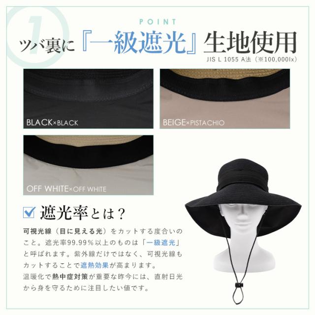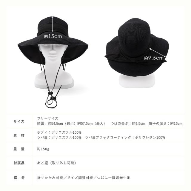 ※折りたたみ可能、あご紐付き、サイズ調整可能、つばに一級遮光生地