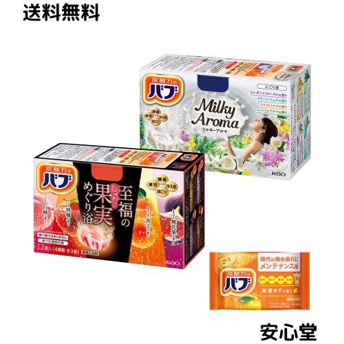 ◆商品名:バブ アソート 8種類 24錠+入浴剤付き(ミルキーアロマ+至福の果実めぐり浴)