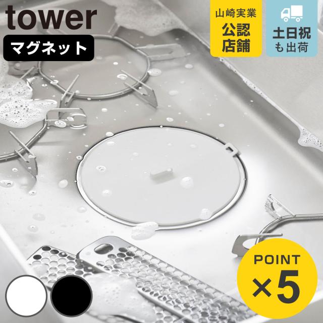 tower 山崎実業 マグネット浸け置き洗いキャップ タワー ( 4903208013161 タワーシリーズ 浸け置き洗いキャップ マグネット シンク 食洗機対応 磁石 浮かせる シンク用 ふた カバー キッチン シンク掃除 つけ置き 台所 栓 浸け 山崎実業 tower キッチン)