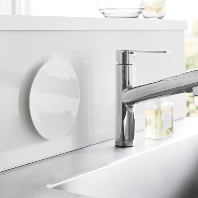 使わない時は、キッチンパネルやシンク周りのマグネットが付く壁面に浮かせて収納することができます。