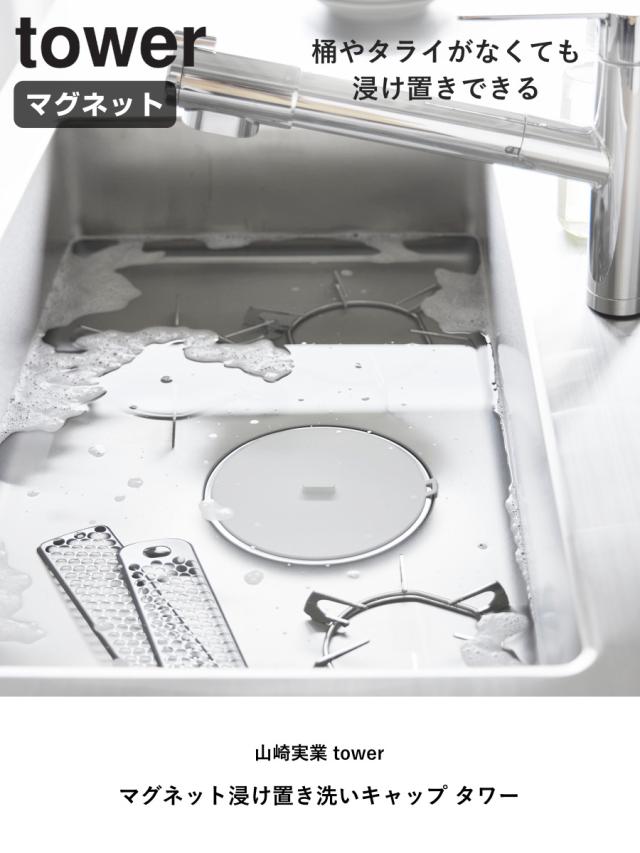 山崎実業 tower マグネット浸け置き洗いキャップ タワー ( 4903208013161 タワーシリーズ 浸け置き洗いキャップ マグネット シンク 食洗機対応 磁石 浮かせる シンク用 ふた カバー キッチン シンク掃除 つけ置き 台所 栓 浸け )