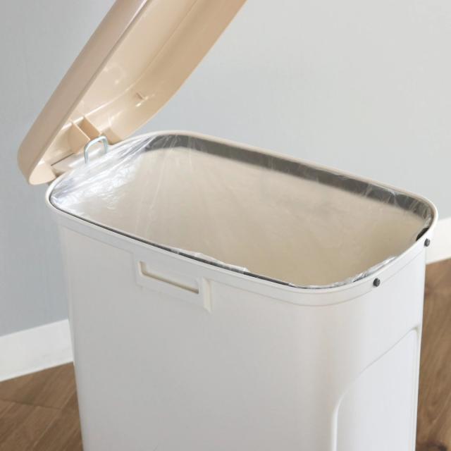 袋止め付きなので袋のズレ落ちを防止するだけでなく、外から袋が見えなくなり生活感が隠せます。