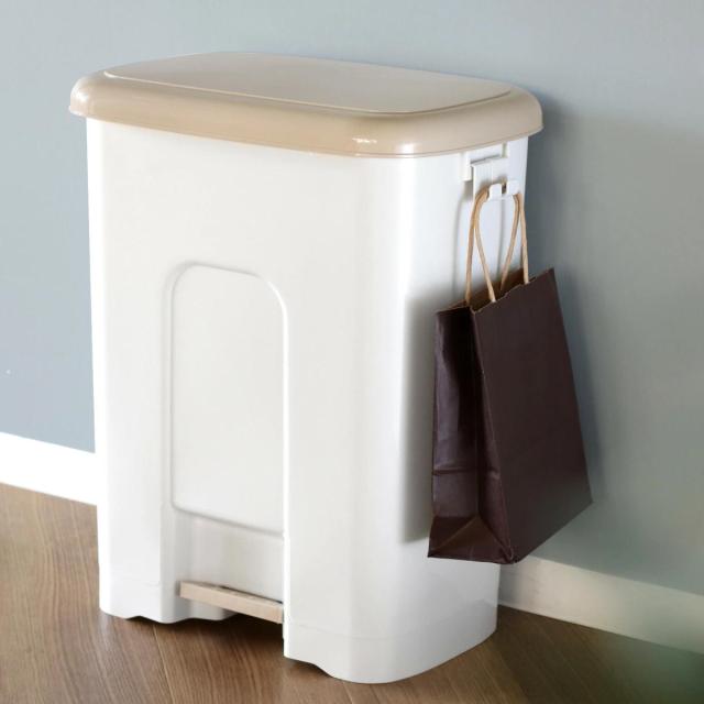 ペダルを踏んで開閉できるフットペダル式のゴミ箱です。両手が塞がっている時でもフタの開閉ができるので、忙しい調理中に大活躍します。かがまなくてもフタを開けられるので作業効率もアップします。