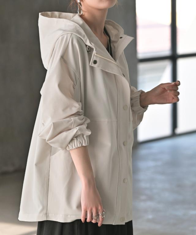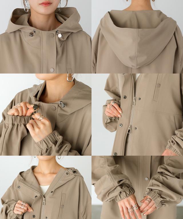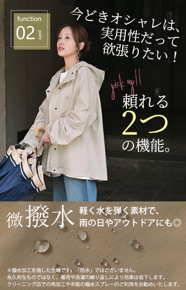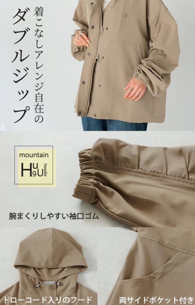 アウター マウンテンパーカー 花粉 防止 微 一部4月中旬入荷 撥水 レディース ロング コート ジャケット パーカー オーバー フード 羽織 ドロップショルダー ダブルジップ ライトアウター 大きいサイズ 体型カバー きれいめ 通勤 雨 黒 ベージュ 春 夏 HUG.U 秋新作