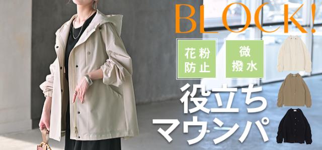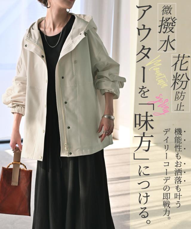 花粉防止+撥水加工を施した生地で仕立てたマウンテンパーカーです。