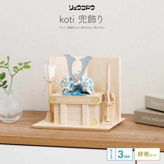 五月人形 コンパクト おしゃれ ちりめん 兜 リュウコドウ koti 兜飾り 絆希セット 選べる3種 端午の節句 5月人形 木製