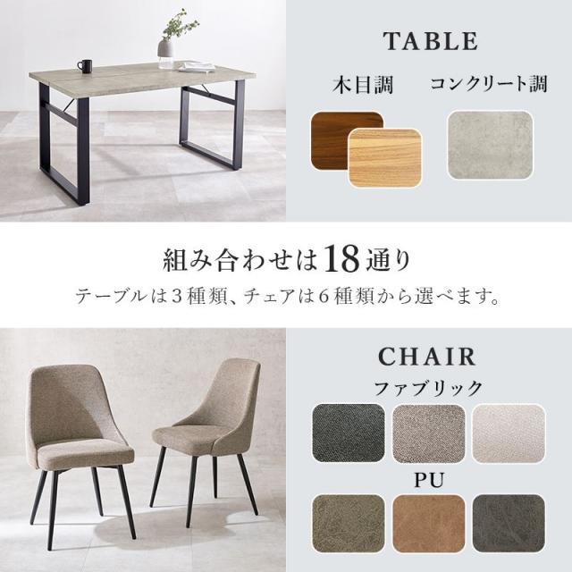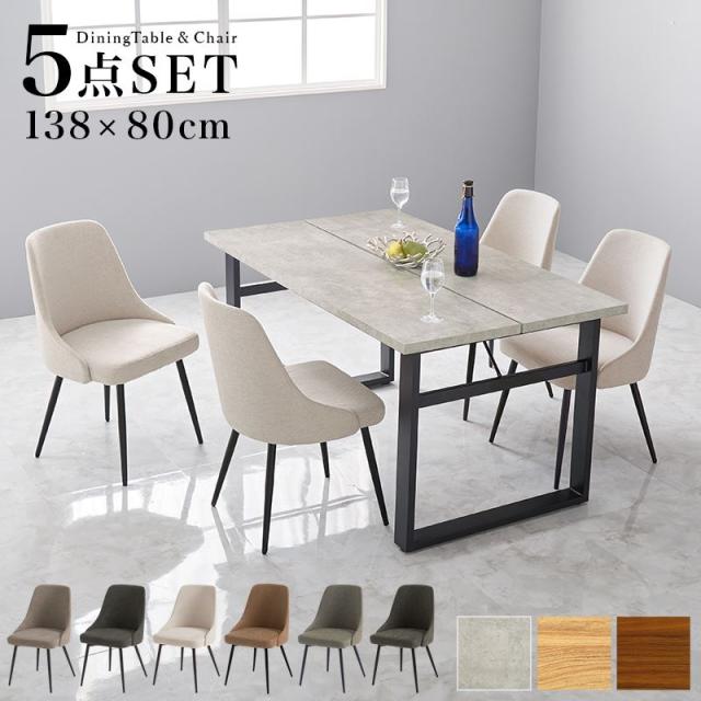 ダイニングテーブルセット ダイニング5点セット 4人用 幅138cm 選べる天板 木目 コンクリート調 チェア4脚 ファブリック&PUレザー