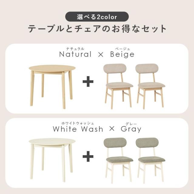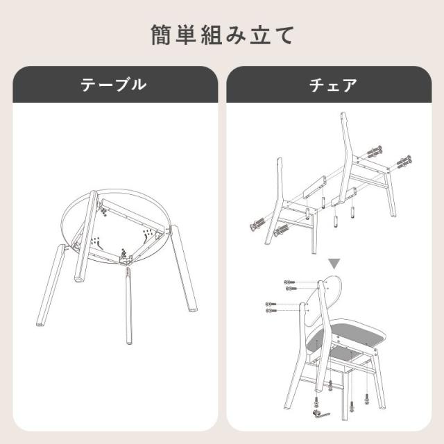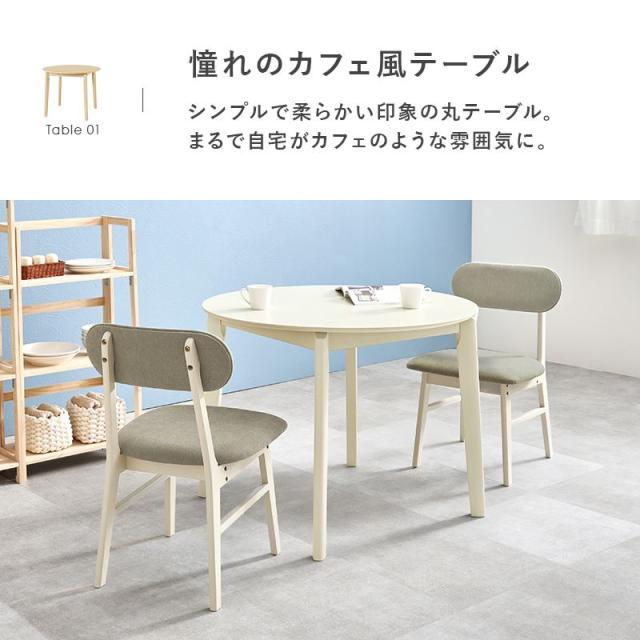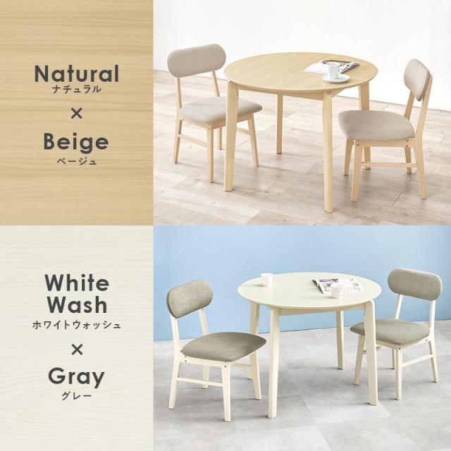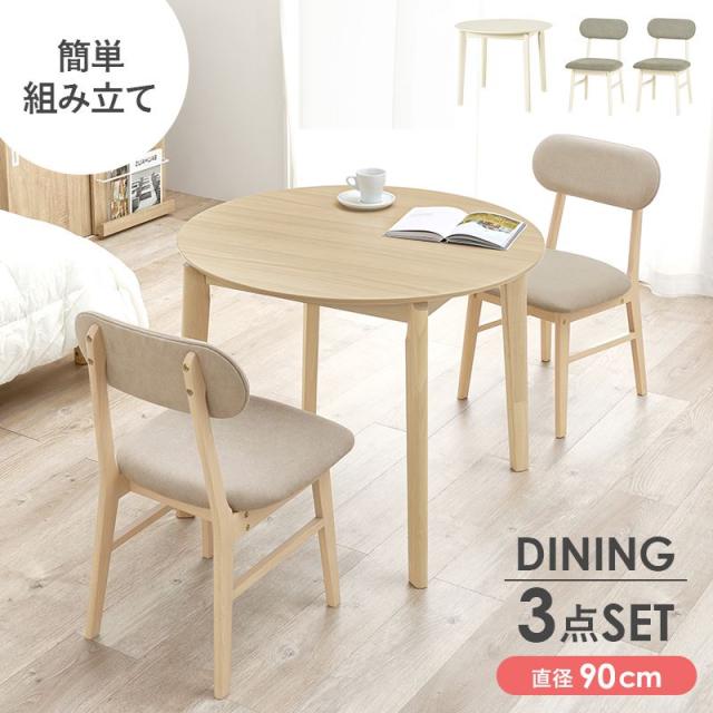 ダイニングテーブルセット カフェテーブル ダイニング3点セット 2人用 円形 丸型 直径90cm 木製 簡単組立