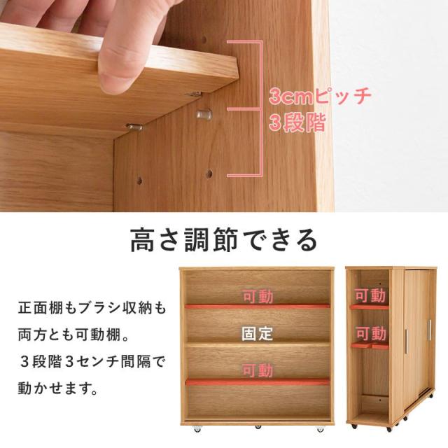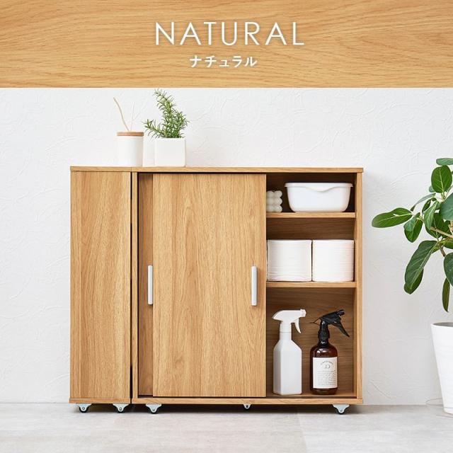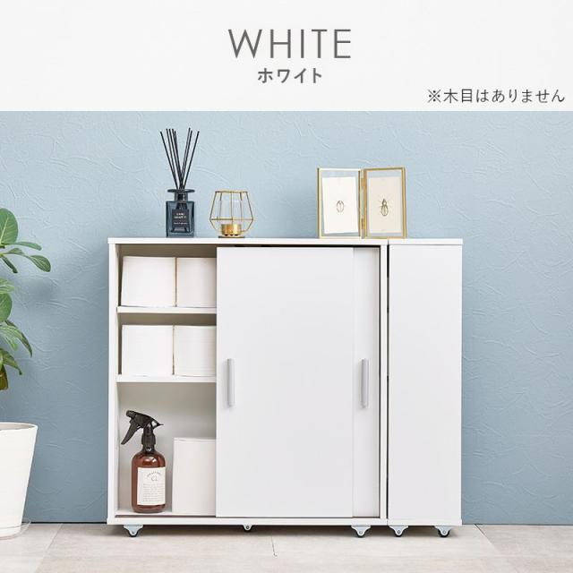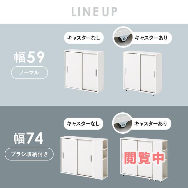 トイレ収納 ブラシ収納付き トイレラック 収納棚 薄型 スリム キャスター付き 幅74cm 奥行19.5cm 高さ63cm シンプル 引戸タイプ