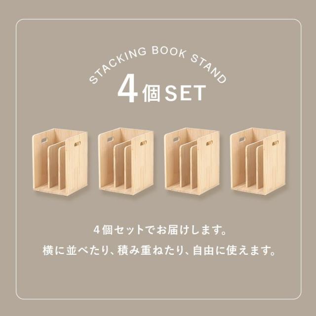 本棚 ブックラック 重ねて使えるブックスタンド 4個組 仕切り付き 木製 無垢 天然木 パイン材 無塗装 DIY