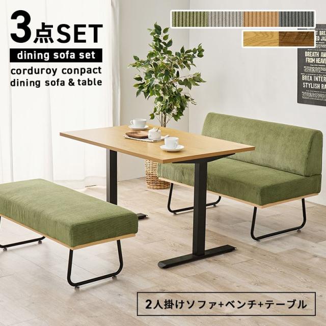 ダイニングテーブルセット ダイニング3点セット 2人〜4人用 コーデュロイ コンパクト ロースタイル テーブル1台 ベンチ1脚 ソファー1脚