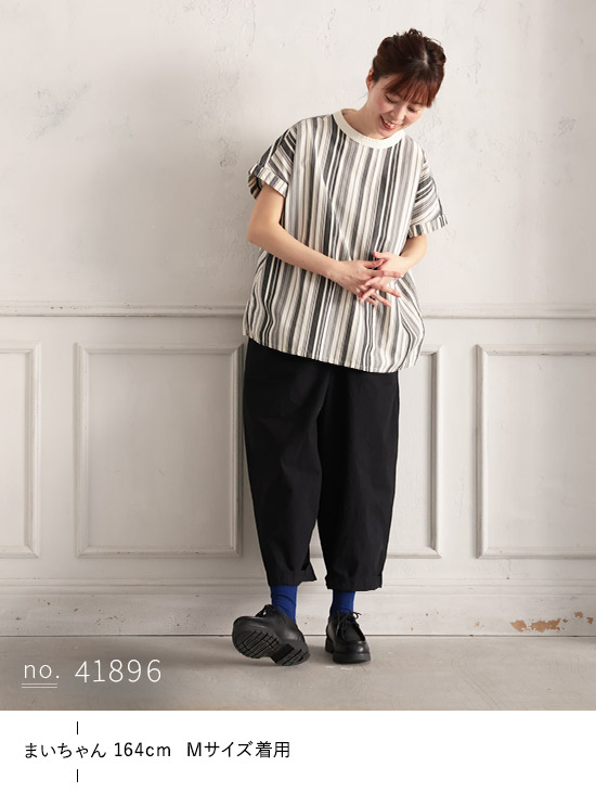 O.W.N 袖あり!なノースリのストライプなプルオーバー レディース ブラウス 半袖 フレンチスリーブ クルーネック トップス