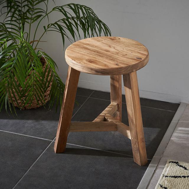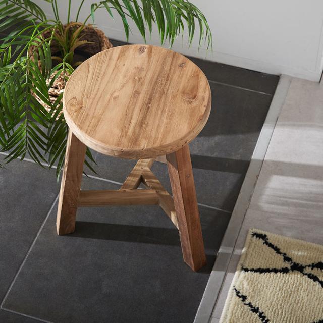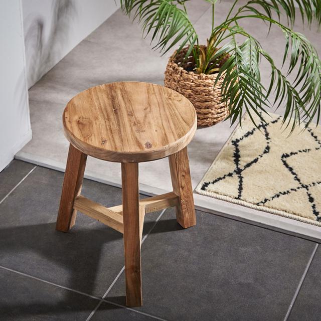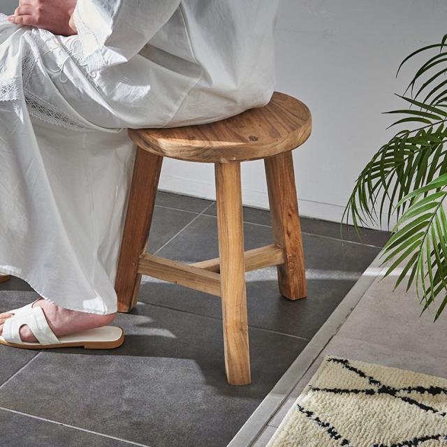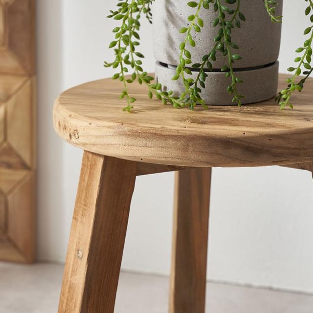 スツール チーク ウッド 天然 木 製 ショートタイプ 古材 約 高さ 39cm 椅子 チェア プランター スタンド 花 台 フラワー 植物 飾り 鉢置き 14134