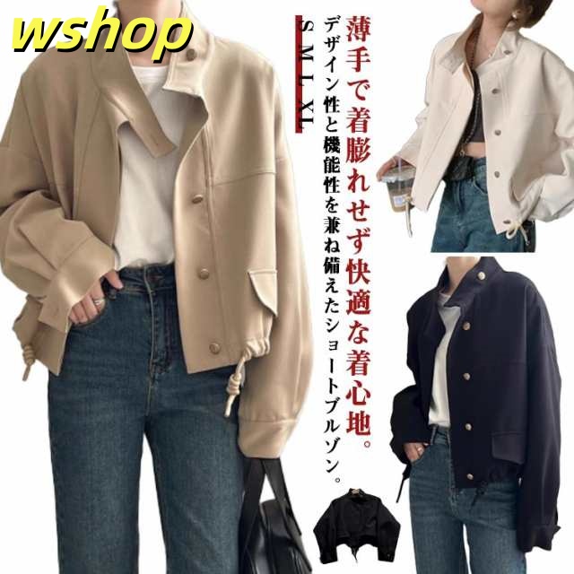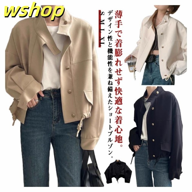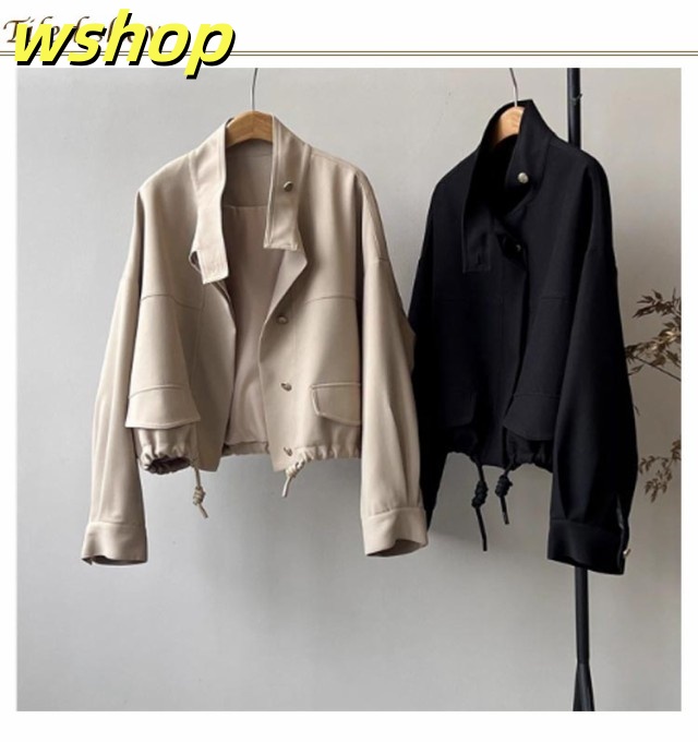 【wshop 】スプリングコート レディース ライトコート ショートコート アウター ライトアウター ジャケット スタンドカラー ドルマン モッズジャケット パーカー 春 春先 ナチュラル マンパ ブルゾン 羽織り スプリングコート ベージュ ブラック ホワイト