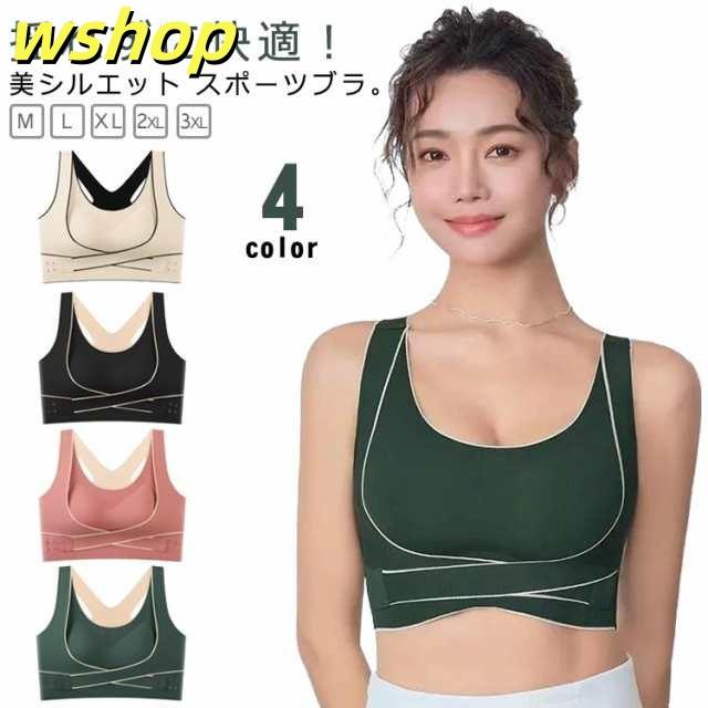 | 揺れずに快適!美シルエット スポーツブラ。 しっかりホールド!両サイドのベルト部分でサイドからアンダーに向けてしっかり支えるので揺れにくく、運動に最適です。 3段階調節できるホック!ホックが3列になっているのでその日の体調に合わせて調整可能! 背筋サポートで美シルエット!クロスバックスタイルで肩回りが動かしやすい!背筋が伸びるのでキレイな姿勢をキープできます。 段差になりにくい幅広構造!脇部分を高めに作っているので気になる脇の下の段差もなくスッキリ! シームレスで蒸れにくい。生地は柔らかくサラッとして、お肌にも優しいシームレス設計。 パッド部分も通気性が高く、汗をかいても安心! | |