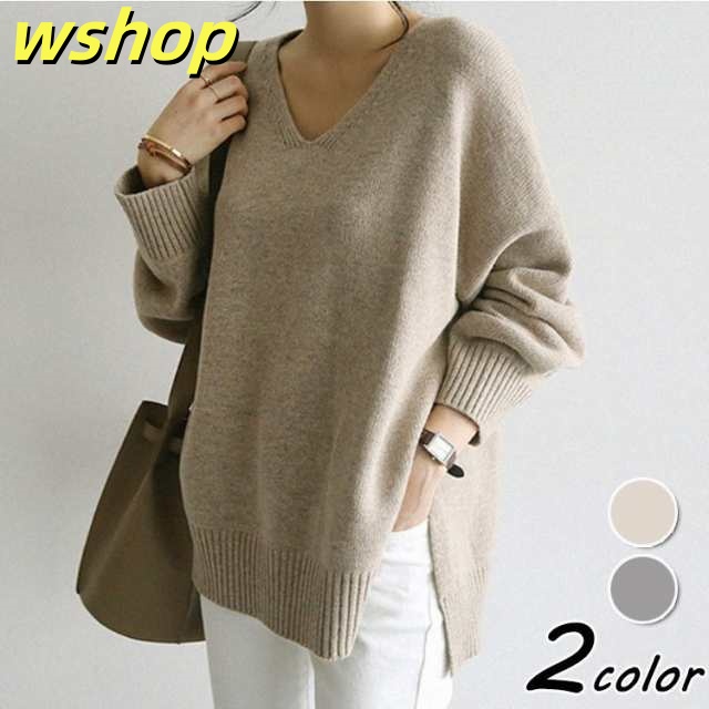 在庫限りの大特価 毎日使える便利品 韓国風 秋冬 ショット丈 オシャレ プルオーバー 】ニットセーター レディース 【wshop Vネック 収納便利 カジュアル 40代 送料無料 ゆったり ニットインナー 無地セーター ランキング常連 長袖トップス 送料無料実施中